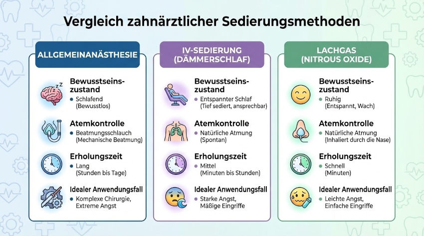 Abgrenzung zur Vollnarkose und Lachgassedierung